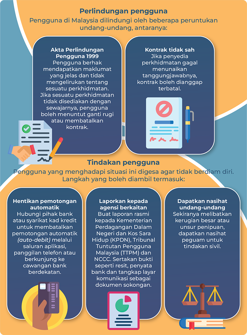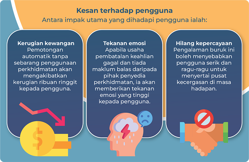 Jika penyedia perkhidmatan gagal dihubungi dalam tempoh 30 hari berturut-turut, pihak bank atau penyedia perkhidmatan kewangan perlu memperkenalkan prosedur Pembatalan Automatik (Auto-cancellation). Langkah ini bertujuan memastikan pengguna tidak terus dibebankan dengan bayaran perkhidmatan yang tidak dapat digunakan seperti yang dijanjikan.