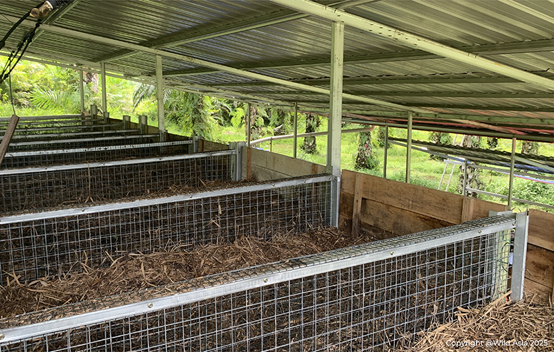 “All the organic materials are gathered from the farm, and we collect the elephant dung from the nearby Borneo Elephant Sanctuary, but any easily available livestock manure would do. It’s a low-energy composting method that does not require heavy machinery or intensive labour,” Chang explains.