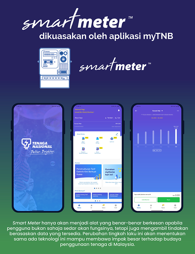 DALAM usaha negara menuju ke arah penggunaan tenaga yang lebih cekap dan mampan, pemasangan Meter Pintar (Smart Meter) oleh Tenaga Nasional Berhad (TNB) merupakan satu langkah penting. Salah satu matlamat pemasangan Smart Meter adalah untuk memberikan kefahaman kepada pengguna mengenai corak penggunaan tenaga mereka dan secara tidak langsung membantu pengguna menjimatkan penggunaan elektrik.