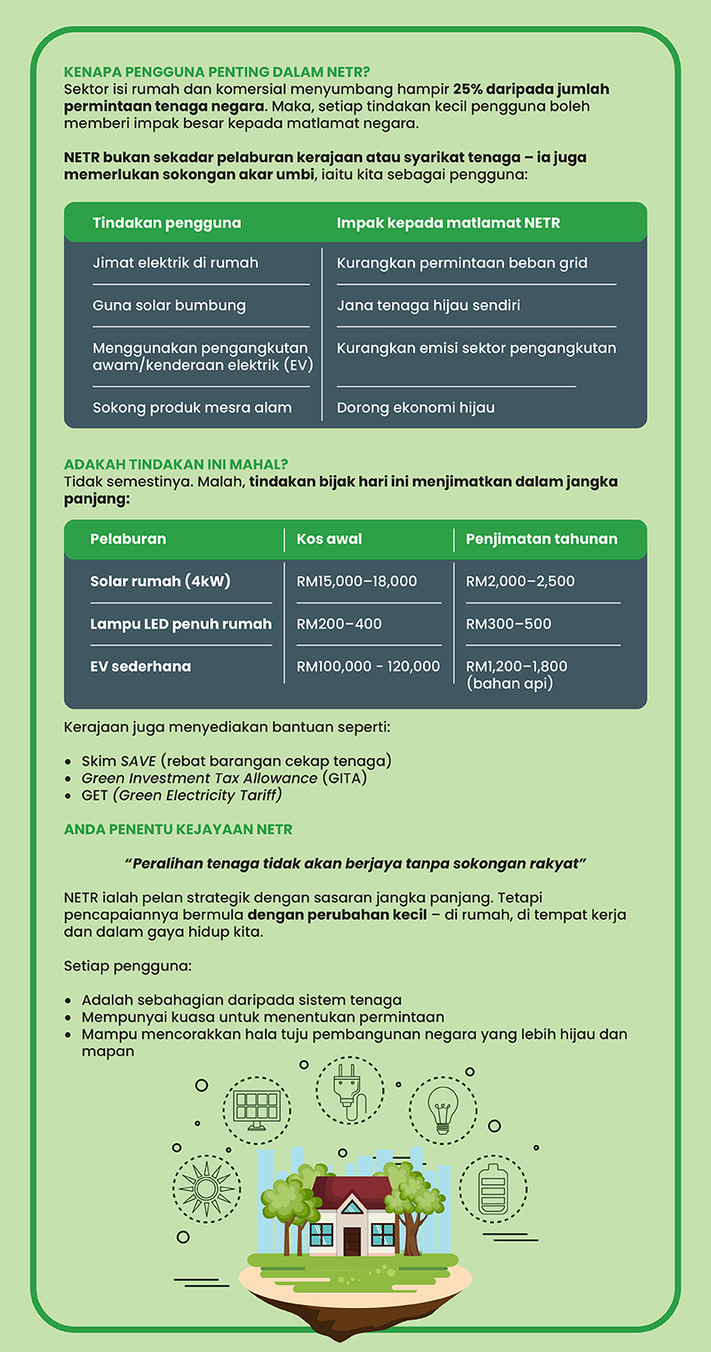 Pelan Peralihan Tenaga Negara (NETR) bukan hanya dokumen kerajaan – ia adalah pelan tindakan bersama. Sebagai pengguna, apa yang boleh anda lakukan untuk menjayakannya?