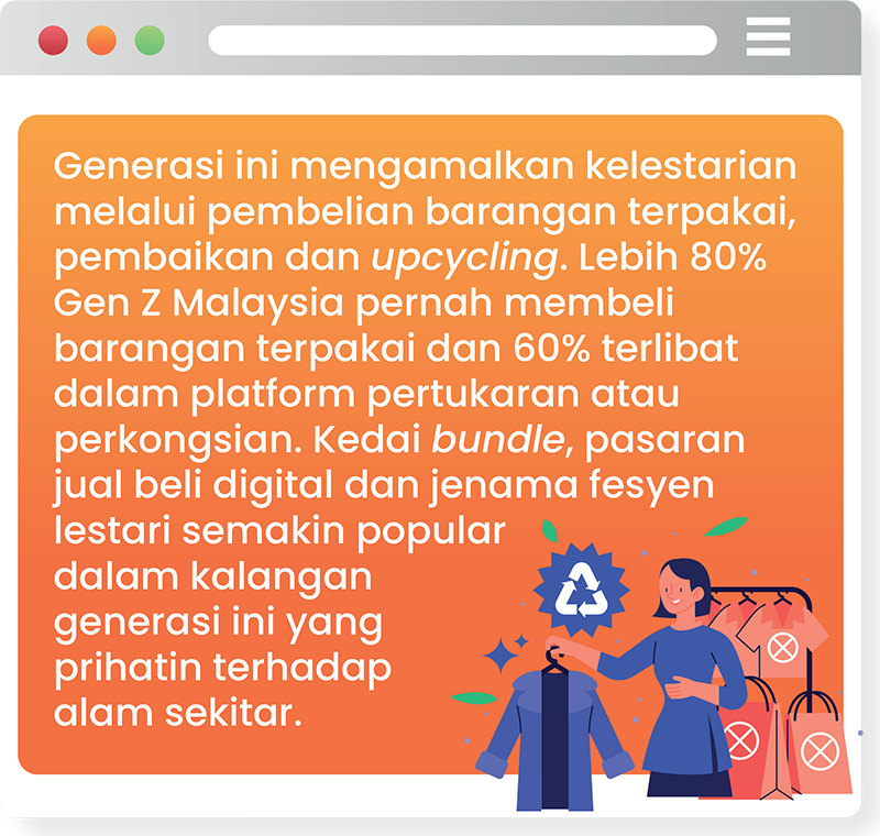 Kelestarian alam sekitar, ketelusan dan tanggungjawab sosial korporat sangat mempengaruhi kesetiaan mereka terhadap jenama. Gen Z lebih berminat dengan sesuatu jenama yang berkongsi secara terbuka mengenai usaha kelestarian, penggunaan sumber yang beretika serta penglibatan dengan komuniti.