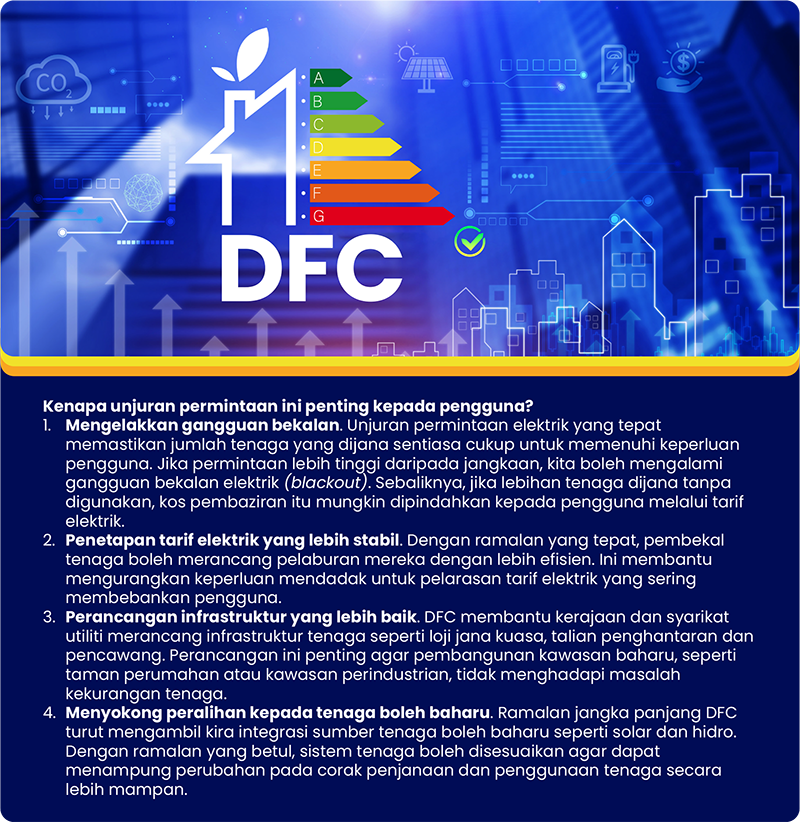 Dalam menghadapi cabaran seperti perubahan iklim dan pertumbuhan bandar yang semakin pesat, peranan DFC menjadi semakin penting. Pengguna masa depan mungkin menggunakan lebih banyak tenaga untuk kenderaan elektrik, peralatan rumah dan sistem penyejukan pintar. Tanpa ramalan dan perancangan yang teliti, negara boleh terdedah kepada krisis tenaga yang memberi kesan langsung kepada pengguna.