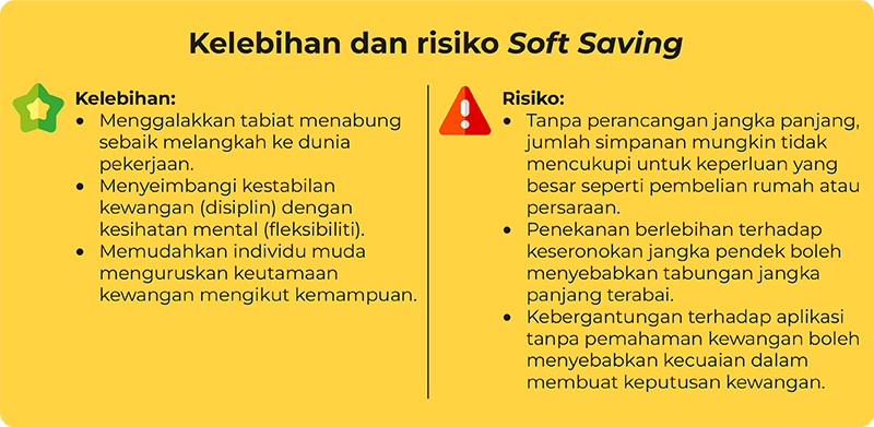 Secara asasnya, soft saving ialah tabiat menyimpan wang dalam jumlah yang kecil dan konsisten tanpa tekanan untuk mencapai sasaran yang besar.