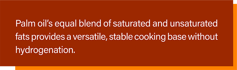 Palm oil supplies more than 30% of the world’s edible oils and fats and continues to play a central role in global food security. Its balanced fatty-acid profile, natural vitamin E tocotrienols, and absence of trans-fats make it an essential ingredient in both home cooking and large-scale food manufacturing.