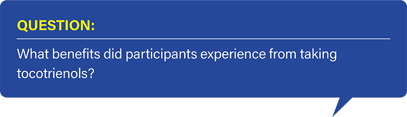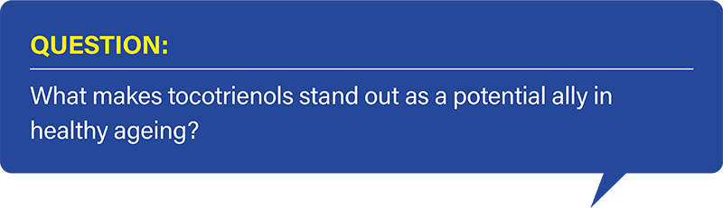Recent research has further strengthened the case for tocotrienols in healthy ageing. A breakthrough clinical study led by Prof. Madya Dr. Razinah Sharif and her team at the National University of Malaysia (UKM), added important human scientific evidence to the growing body of research on tocotrienols and healthy ageing¹.